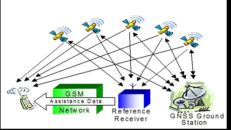 L’AGPS differisce dal regolare GPS aggiungendo un altro elemento alla equazione, l’Assistent Server. In una rete regolare GPS ci sono solo i satelliti ed i ricevitori GPS. In una rete AGPS, il ricevitore, essendo limitato nella potenza di elaborazione e normalmente sotto la possibilità di fare un regolare fixing, comunica con il server che ha un alta potenza di elaborazione e accede ad una rete di riferimento.